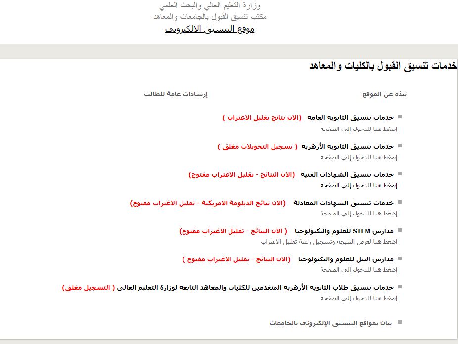 رابط وخطوات تقليل الاغتراب لطلاب الدبلومات الفنية من خلال موقع التنسيق الالكتروني