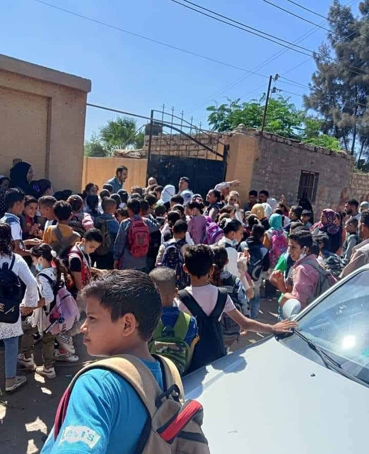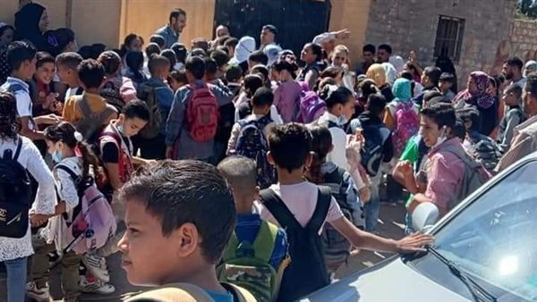 دون إجراءات احترازية.. تكدس وزحام أولياء الأمور والطلاب أمام مدرسة بالإسماعيلية
