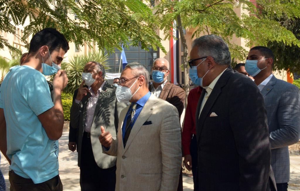 أشاد رئيس الجامعة بالتزام الكليات بتطبيق الإجراءات الاحترازية للوقاية من فيروس كورونا، والتزام الطلاب بارتداء الكمامات، حيث التقى مع عدد من الطلاب، مؤكدًا أهمية حصولهم على اللقاح المضاد لفيروس كورونا من خلال مركز لقاح كورونا الذي تم افتتاحه، حيث تولي الجامعة اهتمامًا كبيرًا بتطعيم كافة منتسبيها من الطلاب وأعضاء هيئة التدريس والعاملين والطلاب، بالتعاون مع وزارة الصحة، وبالتنسيق مع المجلس الأعلى للمستشفيات الجامعية.