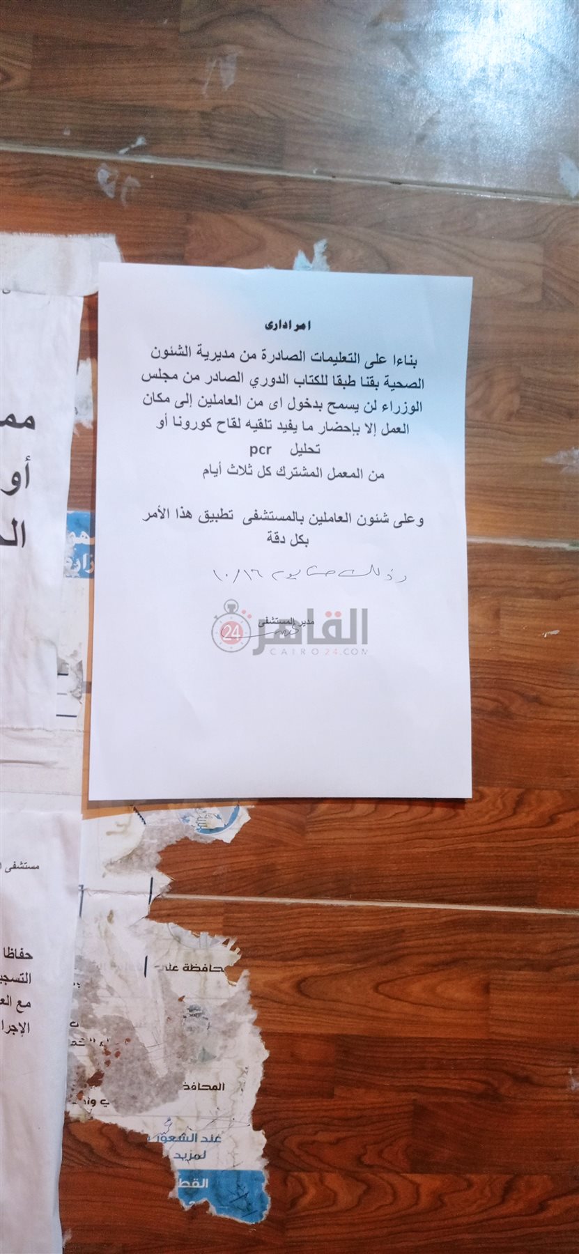 وقال عبدالقوي وفقا لمنشور حصلت القاهرة 24 على صورة منه: بناء على التعليمات الصادرة من مديرية الصحة بقنا طبقا للكتاب الدوري الصادر من مجلس الوزراء لن يسمح بدخول أي من العاملين إلى مكان العمل إلا بإحضار ما يفيد تلقيه لقاح كورونا أو تحليل PCR من المعمل المشترك كل 3 أيام.