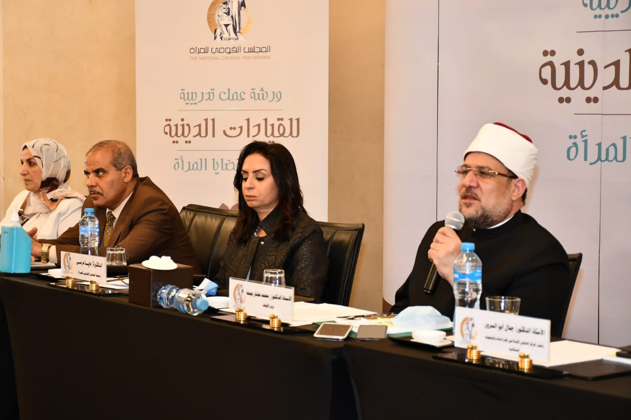 شارك الدكتور محمد مختار، جمعة وزير الأوقاف، فى ورشة عمل تدريبية للقيادات الدينية للتوعية بقضايا المرأة والتي نظمها المجلس القومي للمرأة، اليوم الثلاثاء، بحضور كلٍّ من: الدكتورة مايا مرسى رئيس المجلس القومي للمرأة، والدكتور محمد المحرصاوى رئيس جامعة الأزهر، والدكتورة إلهام شاهين مساعد الأمين العام لمجمع البحوث الإسلامية لشئون الواعظات، والدكتور جمال أبو السرور رئيس المركز الدولي الإسلامي للدراسات والبحوث السكانية، والقمص رافائيل ثروت ممثل الكنيسة القبطية الأرثوذكسية.