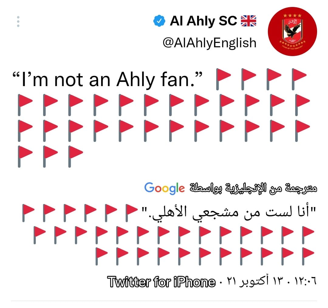 ونشر الحساب الرسمي للنادي الأهلي عبر تويتر تغريدة مفاداها: أنا لست من مشجعي الأهلي.