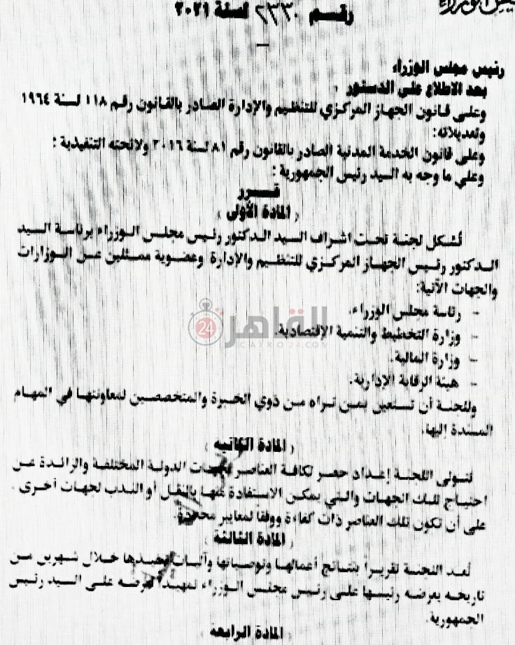 يأتي ذلك القرار بعد الاطلاع على قانون الجهاز المركزي للتنظيم والإدارة الصادر بالقانون رقم 118 لسنة 1964، وقانون الخدمة المدنية الصادر بالقانون رقم 18 لسنة 2016 ولائحته التنفيذية.
