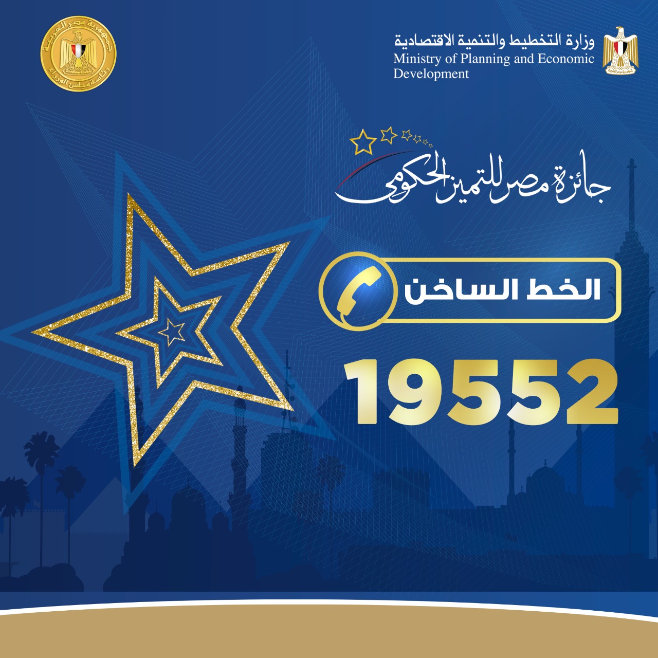 أعلنت جائزة مصر للتميز الحكومي إطلاق الخط الساخن رقم 19552 للرد على الاستفسارات كافة وتلقي الشكاوى والمقترحات المتعلقة بالجائزة، وذلك تزامنًا مع إطلاق الحفل الختامي لتوزيع جوائز مصر للتميز الحكومي في 19 أكتوبر الجاري.