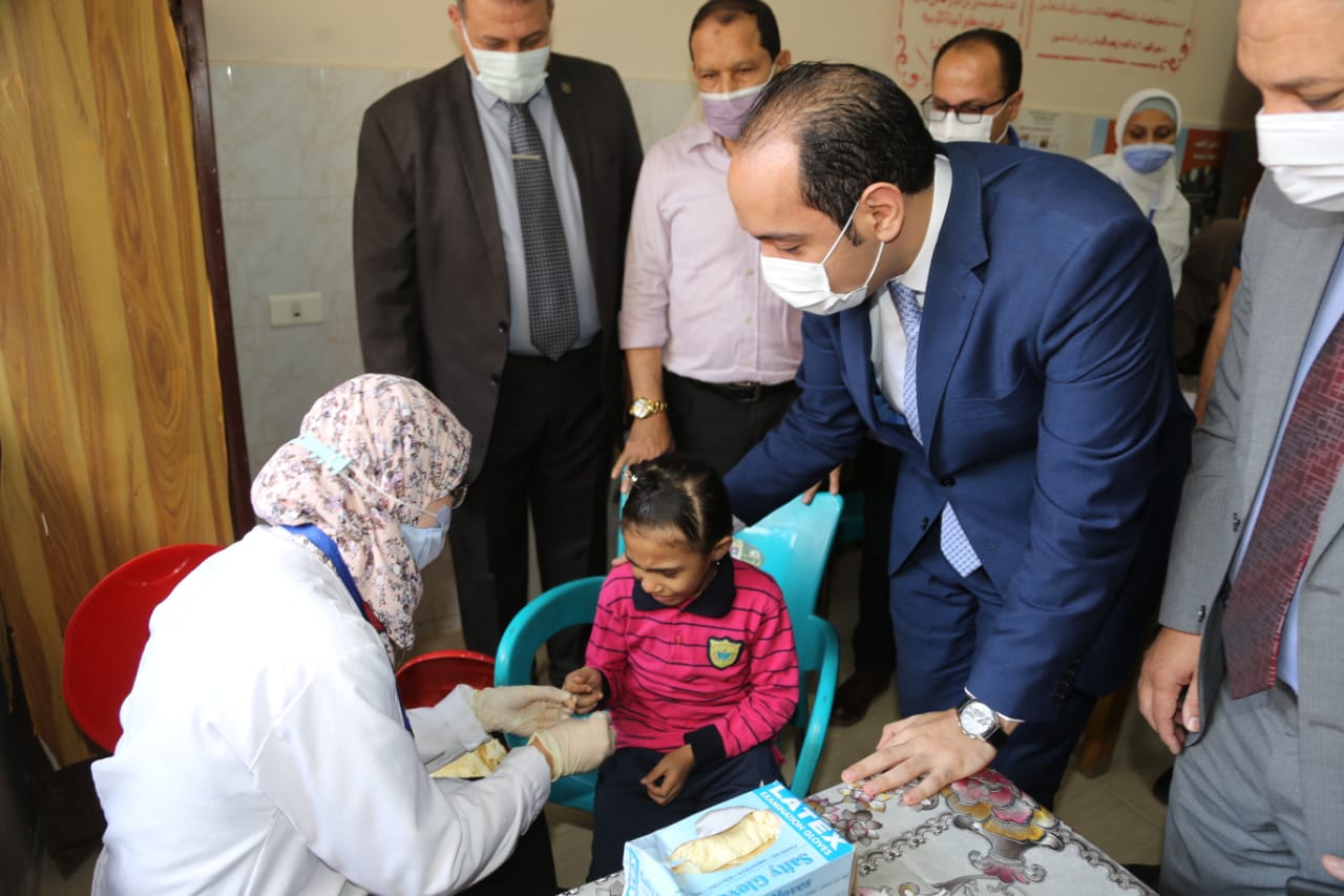 أشار وكيل وزارة الصحة إلى أن عدد الطلاب المستهدفين 621 ألف طالب وطالبة بإجمالي 1120 مدرسة على مُستوى مراكز ومدن وقرى المحافظة، لافتا إلى أن المبادرة تستهدف مسح شامل لكافة طلاب المرحلة الابتدائية، وذلك من خلال قيام فرق طبية تم تدريبهم على أعلى مستوى للفحص المبدئي لنسبة الهيموجلوبين والوزن والطول وكتلة الجسم والخروج بمعلومية التقزم والسمنة والأنيميا، مؤكدا تحويل الحالات الإيجابية لاستكمال الفحوصات الطبية بعيادات التأمين الصحي.