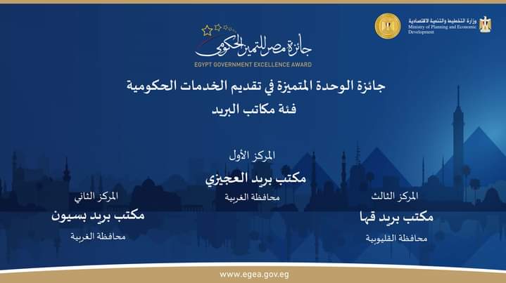 ويستعرض القاهرة 24 الفائزون بجوائز التميز المؤسسي من فئة جائزة الوحدة المتميزة في تقديم الخدمات الحكومية: