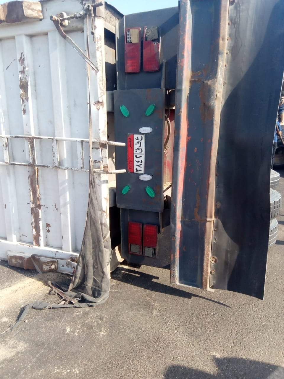 إخطار بانقلاب مقطورة سيارة نقل على الطريق الإقليمي