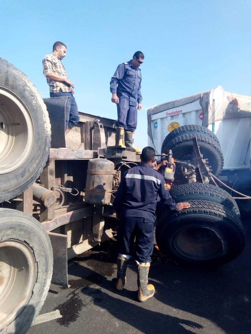 محليات المنوفية تتابع رفع أثار حادث انقلاب مقطورة سيارة نقل ثقيل