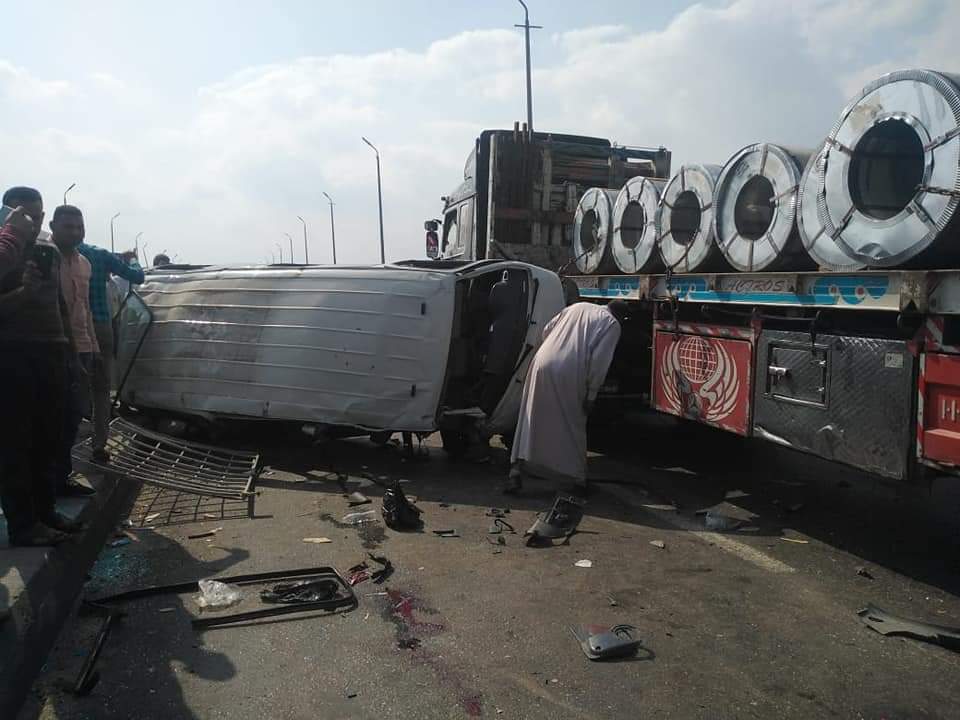 إصابة 7 أشخاص في حادث تصادم ميكروباص وسيارة نقل بالدقهلية | صور