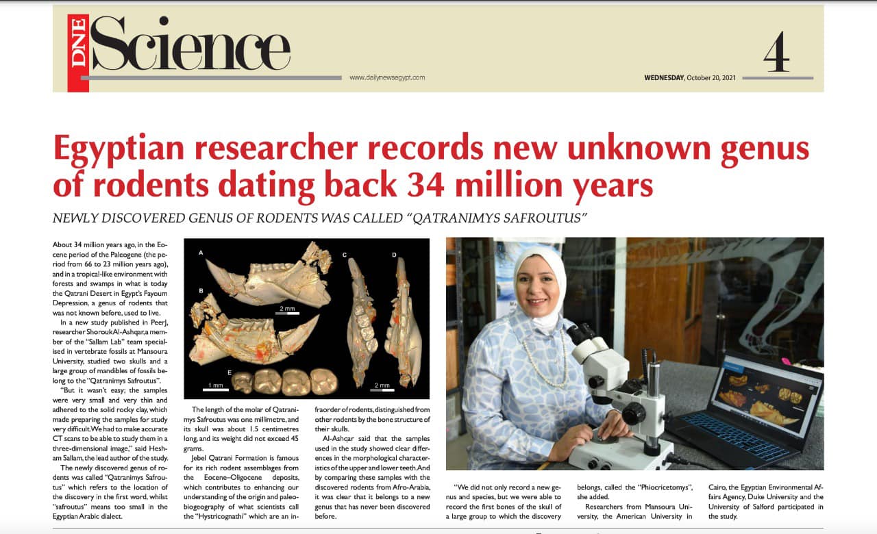 وتكشف الباحثة المصرية عن الصعوبات التي واجهتها أثناء البحث وأبرزها صعوبة فحص العينات بسبب صغر حجم الحفرية ودراسة التفاصيل لذلك قامت بدراسته من خلال صور ثلاثية الأبعاد ليسهل عليها مجال الدراسة للمقارنة بينه وبين القوارض الأخرى.