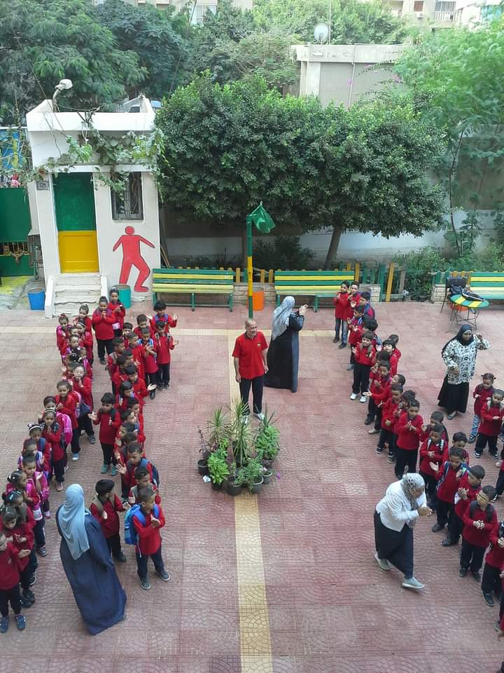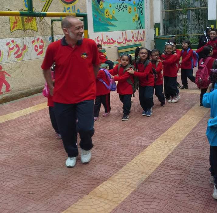 من طابور الصباح حتى مسرح المدرسة والأنشطة الثقافية، يشارك مدير المدرسة طلابه لتشجيعهم على حب المدرسة خاصة كونهم في المرحلة الابتدائية، قائلًا: أنا أبوهم وبعتبرهم أصحابي.