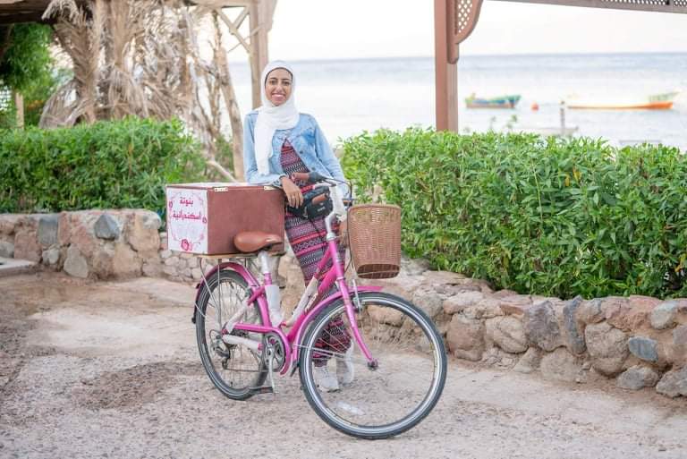 على دراجتها الصغيرة التي تحمل صندوقًا أعلاها، تطوف رانيا محمد، الفتاة البالغة من العمر 27 عامًا، شوارع دهب لبيع الأرز باللبن، لكي تعتمد على نفسها وتحقق ذاتها.