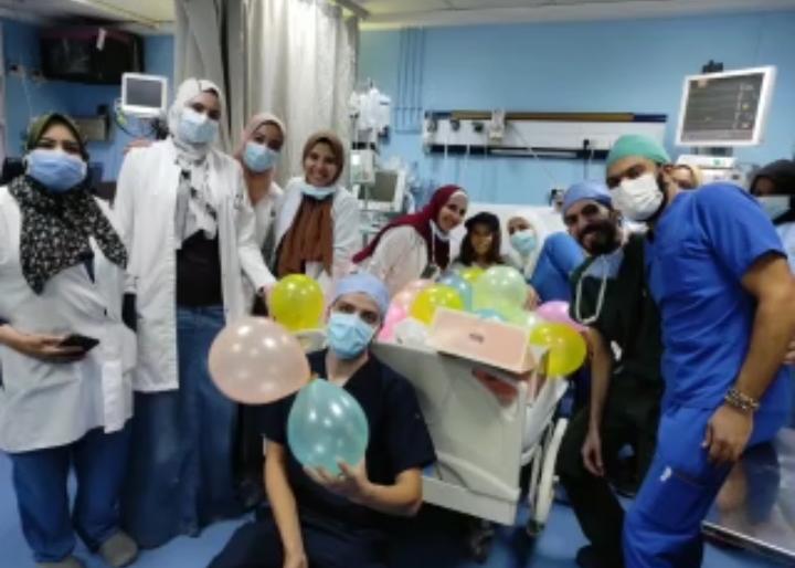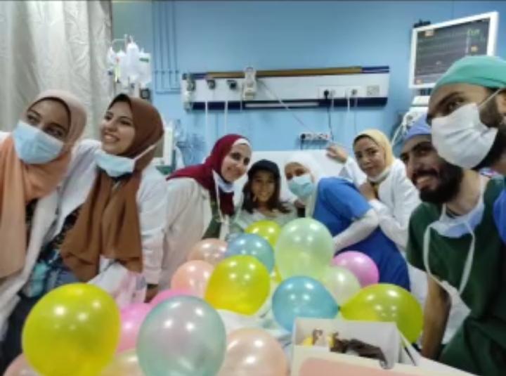 احتفل الأطباء وفريق التمريض والصيادلة والعمال بعيد ميلاد طفلة تدعى آية، محتجزة في وحدة الرعاية الجراحية بالمعهد القومي للأورام، حيث فوجئت الطفلة بتجهيز المكان لها، احتفالا بعيد ميلاد مع دخول الأطباء وطاقم التمريض بالبلالين عليها في غرفتها.