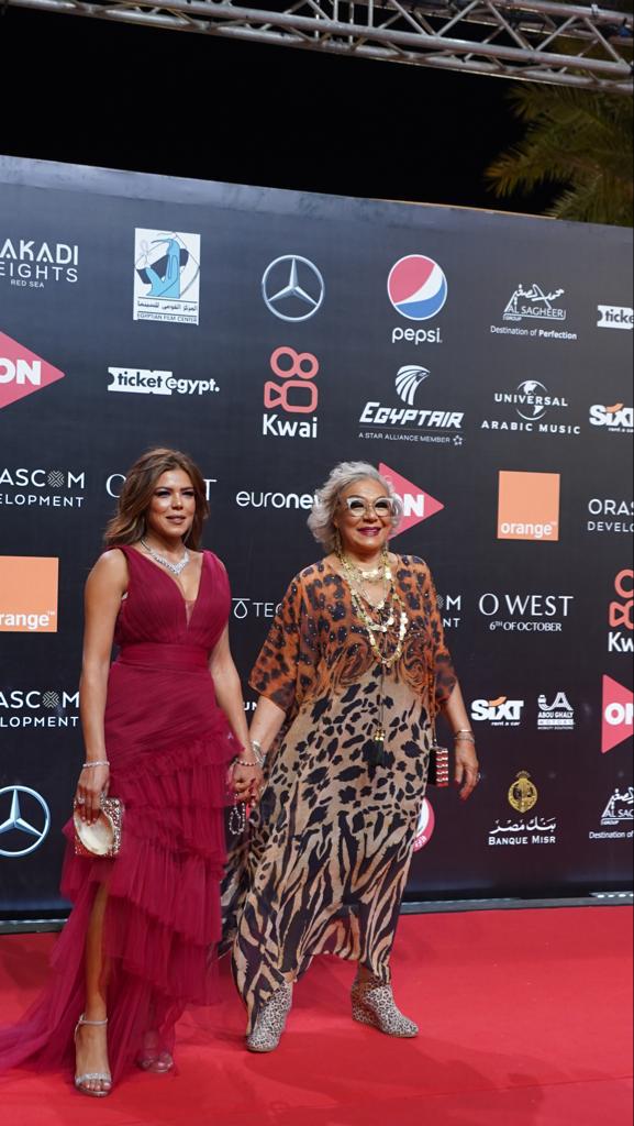 وظهرت المنتجة ناهد فريد شوقي، بإطلالة غريبة على السجادة الحمراء في حف6ل ختام مهرجان الجونة السينمائي، إذ ظهرت مرتدية فستانًا بنقشات التايجر، مع عقد طويل ذهبي.
