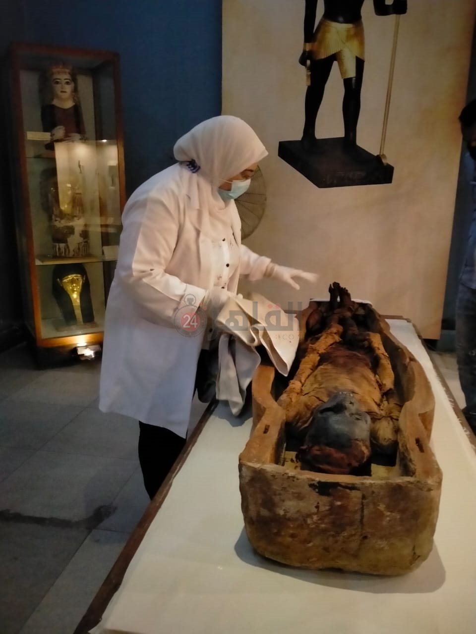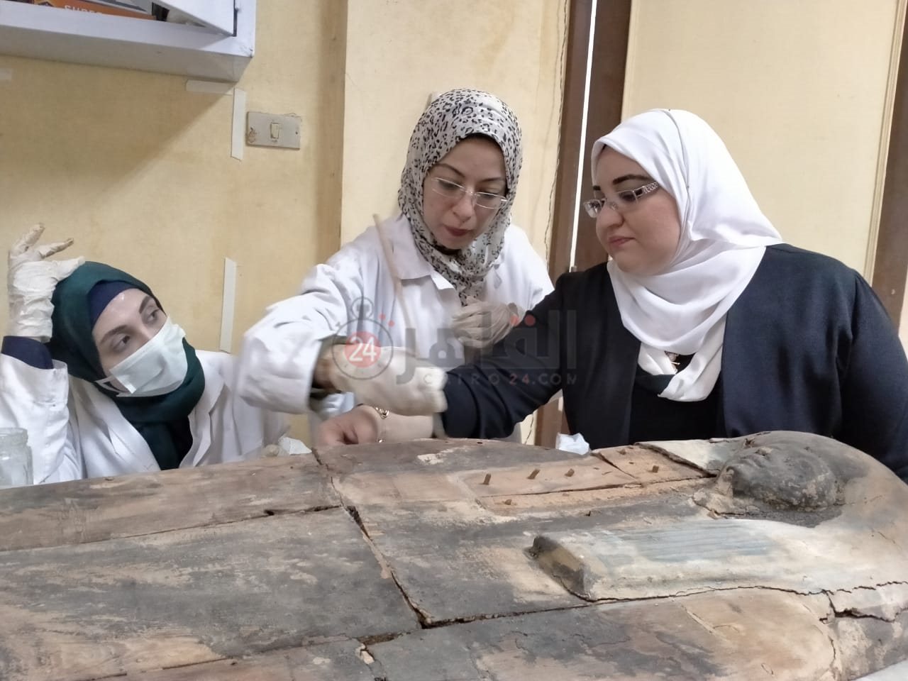 قبل البدء في ترميم أي مومياء يتم فحصها بصريًا