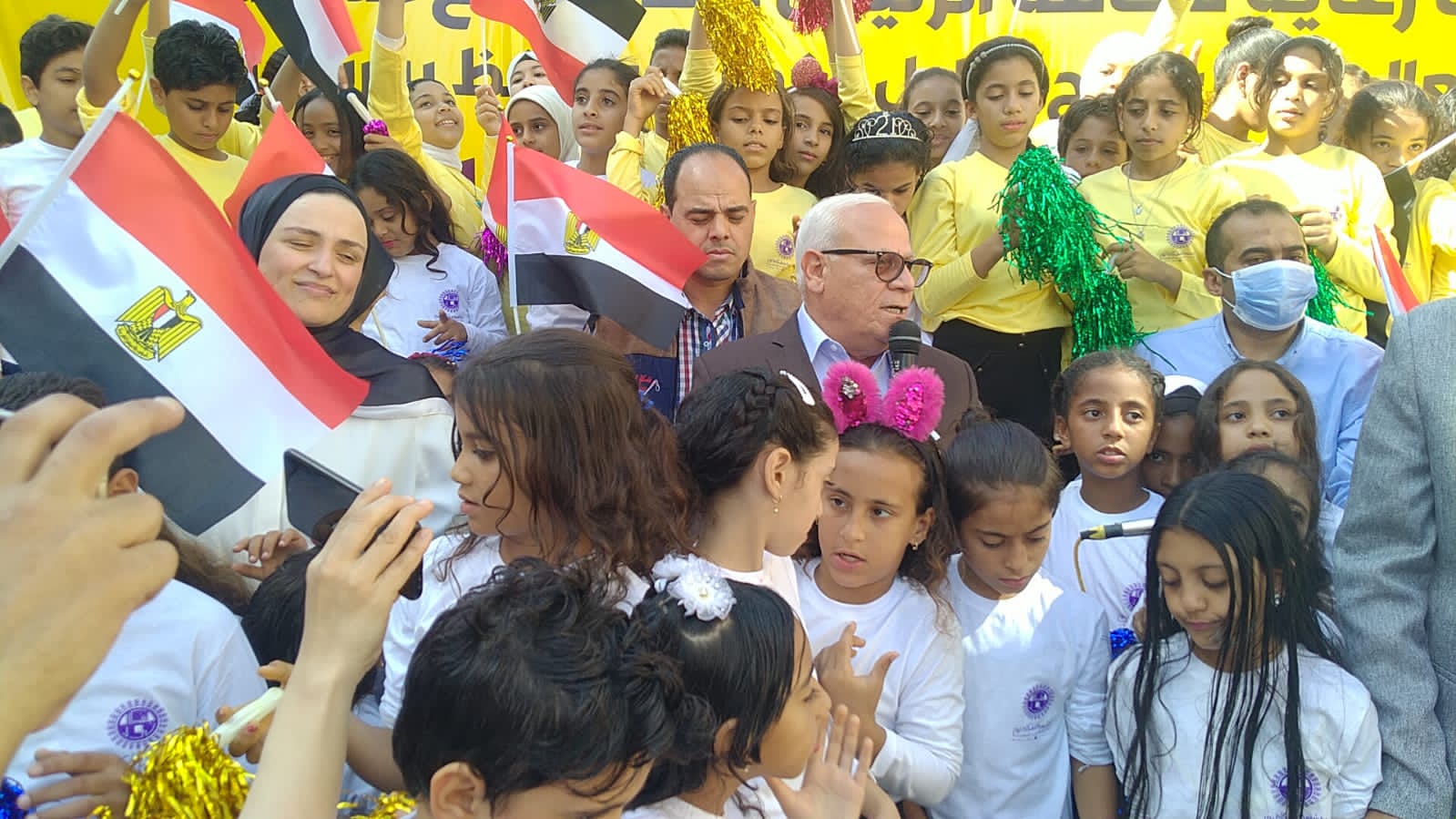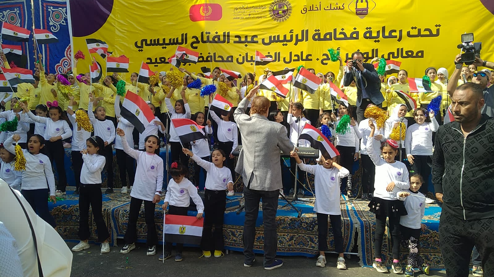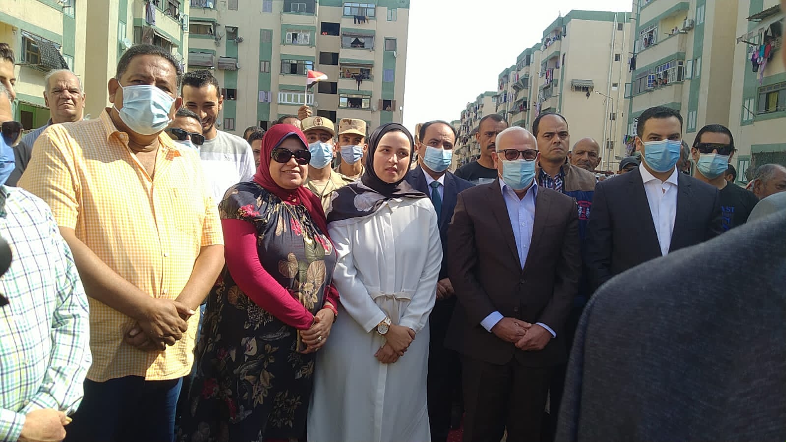 واستقبل الأهالي محافظ بورسعيد بأعلام مصر، وذلك خلال فعاليات افتتاح أعمال تطوير منطقة فاطمة الزهراء التي تضمنت تطوير 65 عمارة سكنية للأهالي، ضمن مبادرة حياة كريمة.