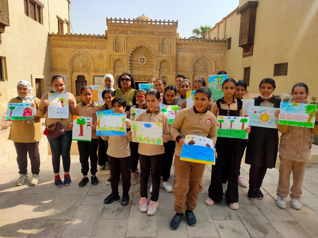 حيث اصطحب أتوبيس الفن الجميل باصطحاب تلاميذ مدرسة الفجر الجديد التجريبية لزيارة المتحف القبطى بمجمع الأديان للتعرف على تاريخ المتحف، والذى تتخذ بوابته الخارجية ذات الطرز الهندسية لمسجد القمر، بينما يزين منتصف مدخله نافورتان ذات طرز إسلامية بالإضافة لتواجد أسدين تماثيل مدخل قصر الحمراء فى الهند، وفى داخل أروقة المتحف شاهد التلاميذ حوالى 16 آلف قطعة آثرية أغلبها ايقونات قبطية، كما نفدت غادة عبد النبى بحديقة المتحف ورشة فنون تشكيلية مستوحاة من الفن القبطى الذى شاهده التلاميذ باستخدام ألوان الفلوماستر على الورق، وتضمنت رسومات عن طرز المتحف الخارجية.