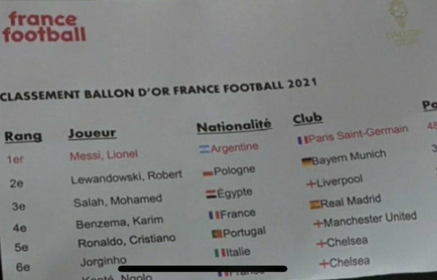وبحسب التسريب، فإن محمد صلاح نجم منتخبنا الوطني يتواجد في المركز الثالث من الترتيب حسب التصويت، فيما يتواجد الأرجنتيني ليونيل ميسي بالمركز الأول ويليه روبرت ليفاندوفسكي نجم منتخب بولندا وفريق بايرن ميونخ الألماني بالمركز الثاني.