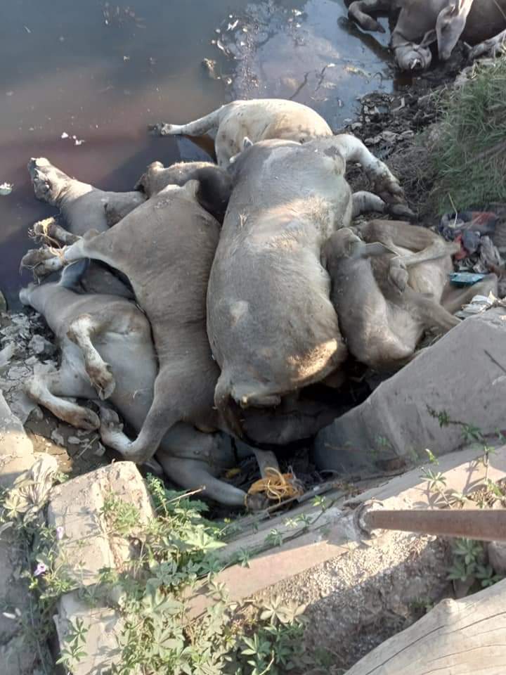 جثث الحيوانات النافقة في مصارف السنطة بالغربية.. والطب البيطري: ندرس الأمر
