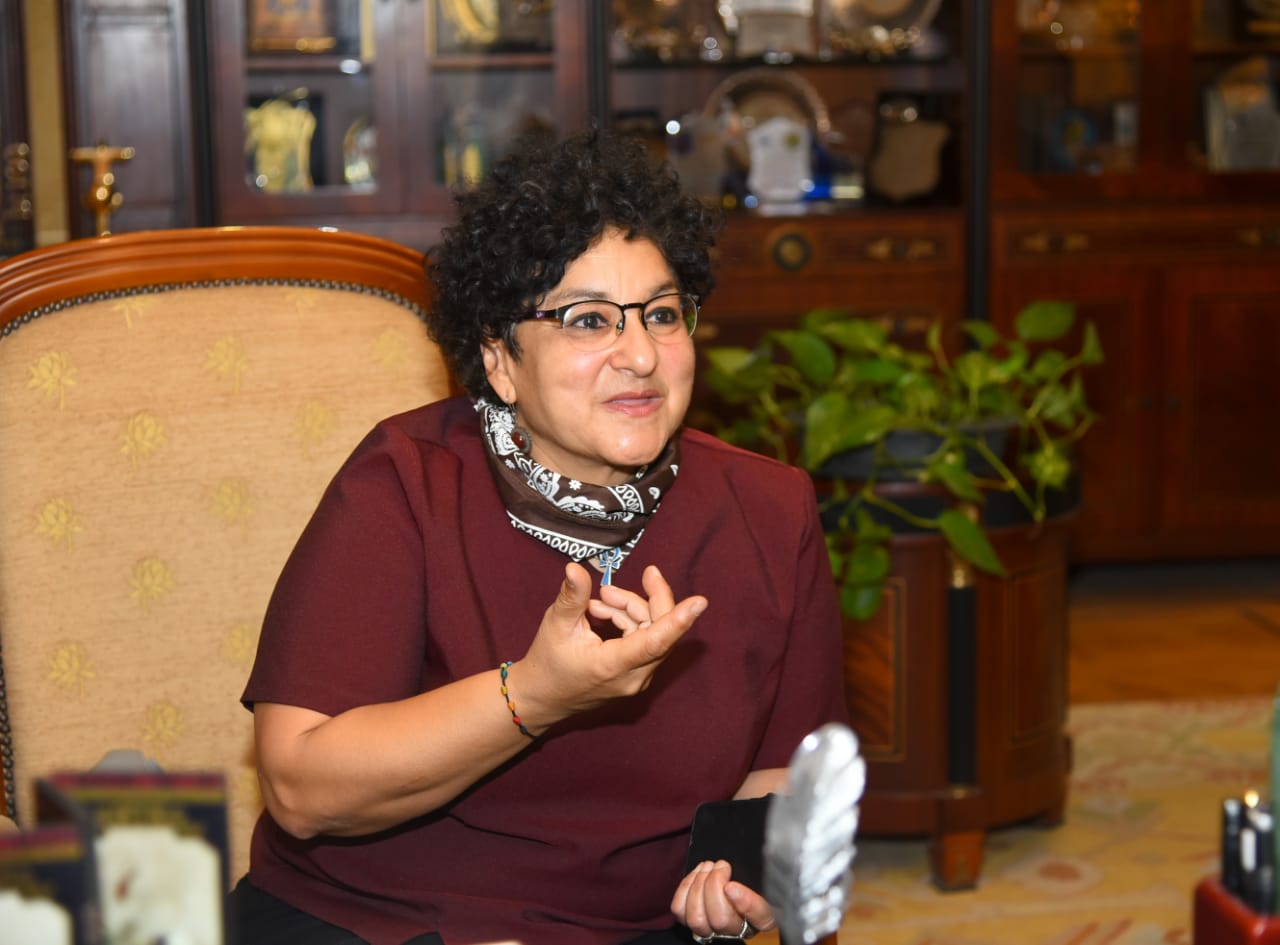 وأكدت: مصر تعيش في وجداني وحريصة على نقل ثقافتها للعالم والتعريف بحضارتها وعظمتها، وأحرص على إتقان كل أعمالي لأنها تحمل اسم مصر قبل اسمي، مرحبة بانضمامها للمبادرة الرئاسية اتكلم عربي، حيث أهدت عددًا من لوحاتها وكتبها إلى السفيرة نبيلة مكرم.