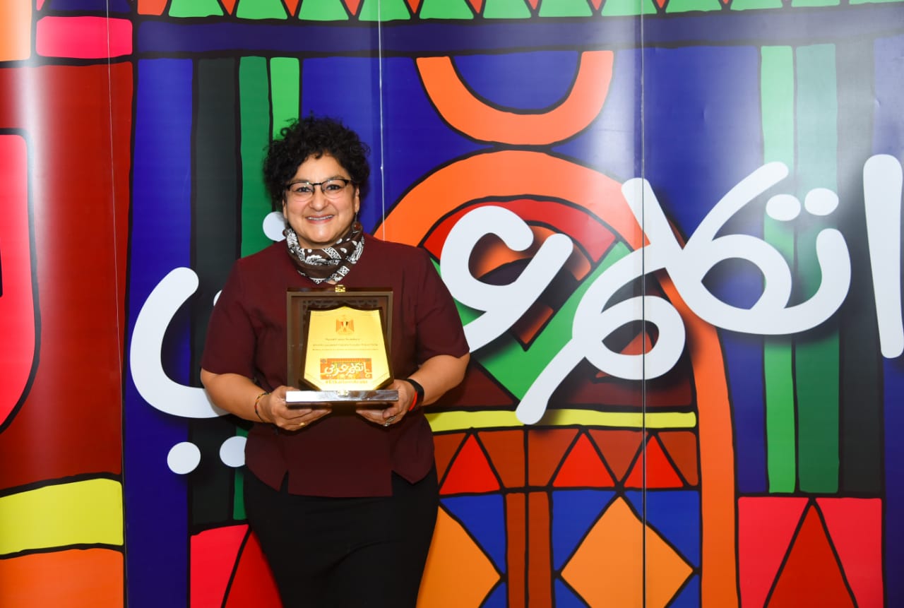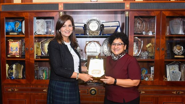 وفي نهاية اللقاء، أهدت السفيرة نبيلة مكرم درع المبادرة إلى الفنانة المصرية منى عنايت، مؤكدة ترحيبها بالنماذج الإيجابية من المصريين بالخارج الذين يشاركون في إنجاح المبادرة الرئاسية اتكلم عربي.