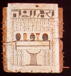 وفى قرون لاحقة أصبح جزء من مادة النصوص متاحًا كذلك لقطاع أكبر من الأهالي في شكل كتاب الموتى والمعروف للآن هو نحو 1200 تعويذة من نصوص التوابيت ولا يحمل التابوت سوى جزء صغير منها، ولا يكون تقسيم التعاويذ على أجزاء التابوت الستة دائمًا مصادفة، فالتعاويذ التي تتعلق برأس المتوفى مثلًا، توجد عادة عند رأس التابوت، وكتاب الطريقين الذي هو وصف للعالم الآخر مع خريطة له أو يمكن مقارنته بكتاب الأمدوات اللاحق، ينقش على قاع التابوت، فيعنى أن المتوفى هو فعلًا في طريقه.
