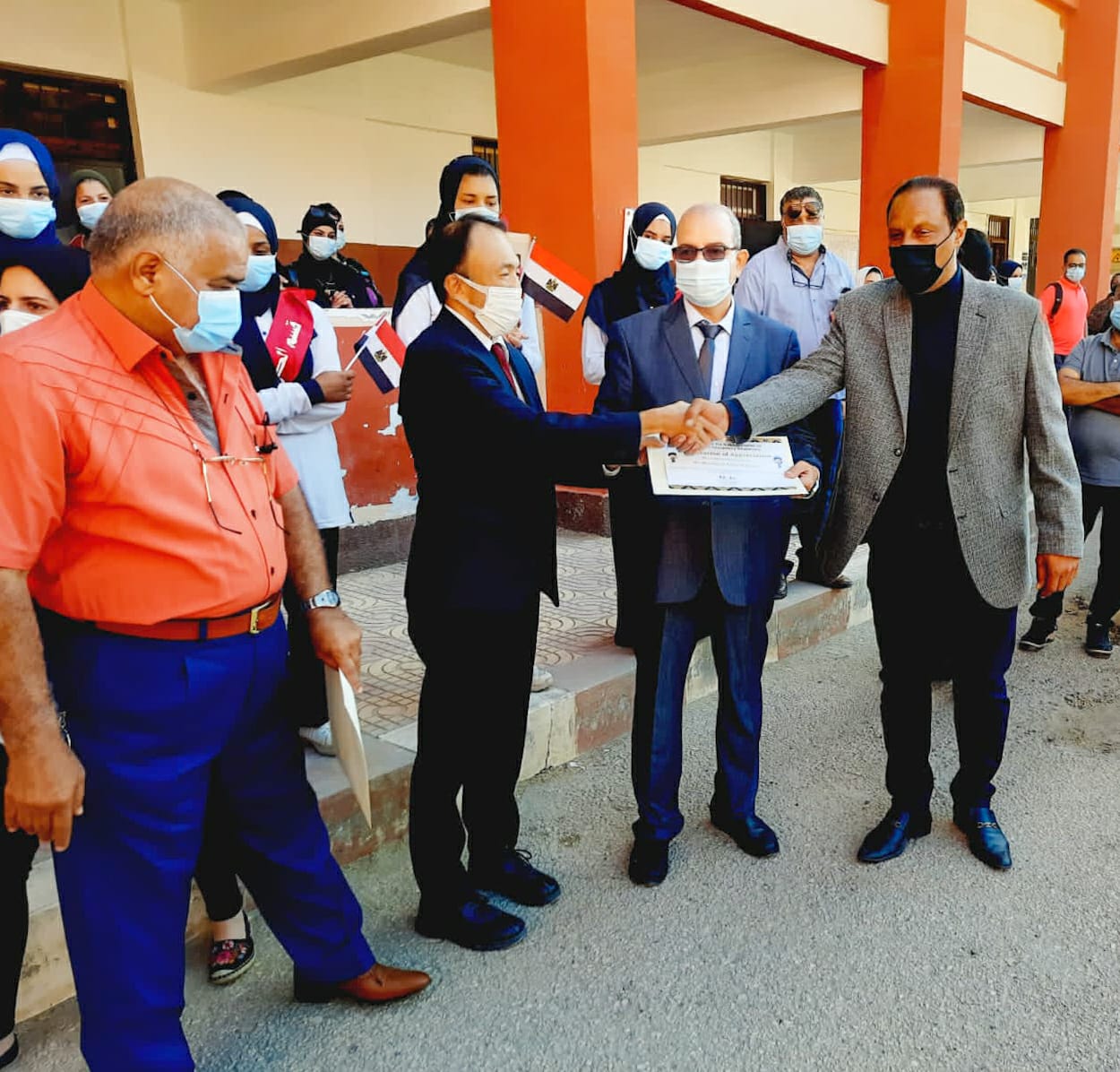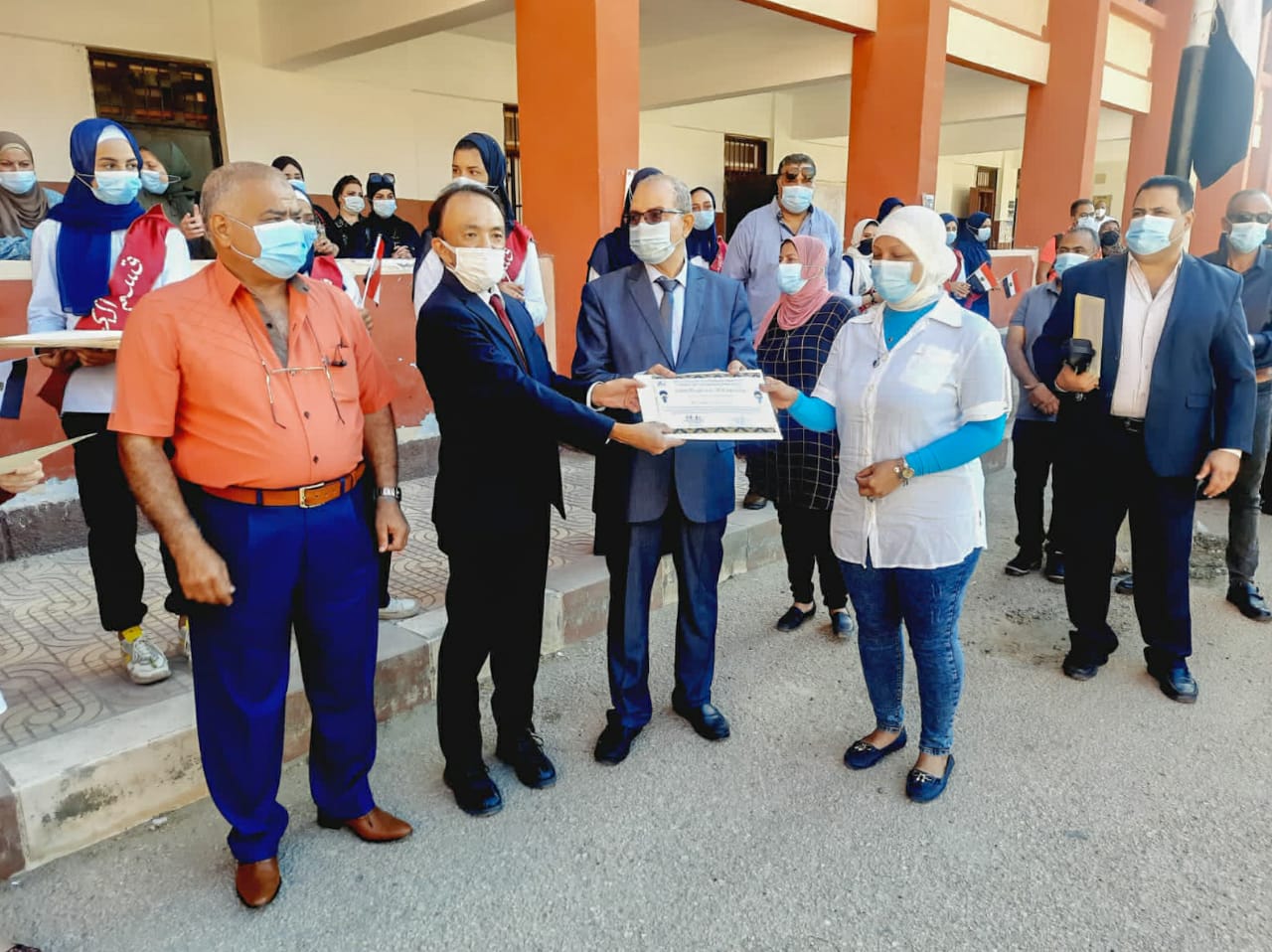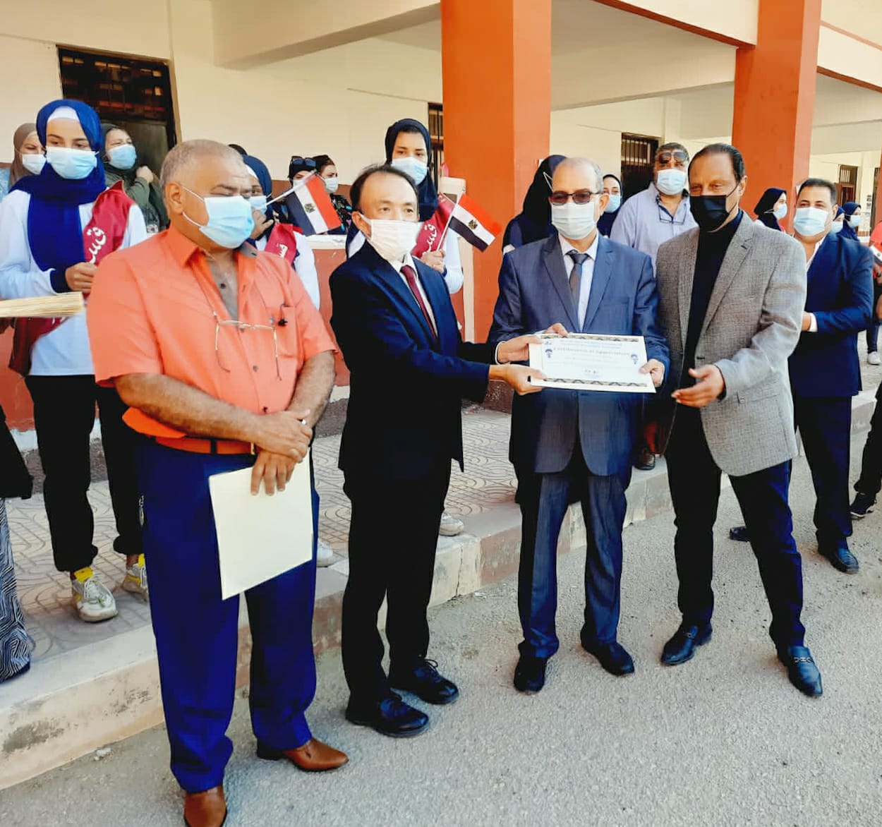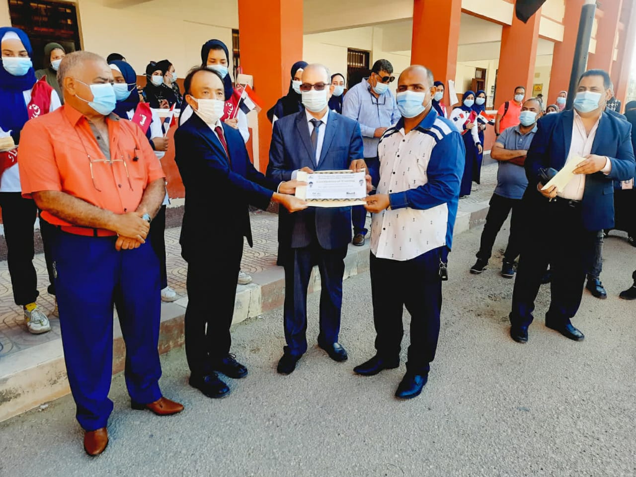 كرم الدكتور نبوي باهي، وكيل وزارة التربية والتعليم ببورسعيد وتاتسوايا ناجومو، رئيس فريق خبراء الوكالة اليابانية للتعاون الدولي جايكا JICA، لمشروع تطوير التعليم الثانوي الفني بمصر اليوم معلمي مدرسة التحرير الصناعية للبنات.