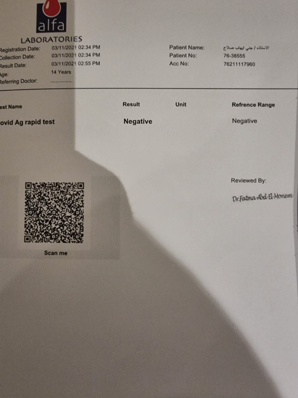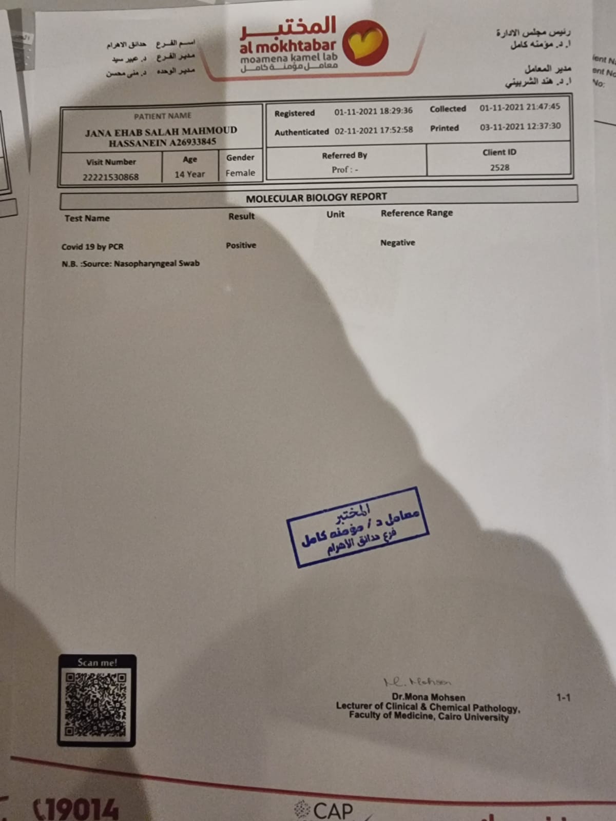 عشنا في رعب.. كاتب صحفي يتهم معمل شهير بتزوير مسحة ابنته | صور