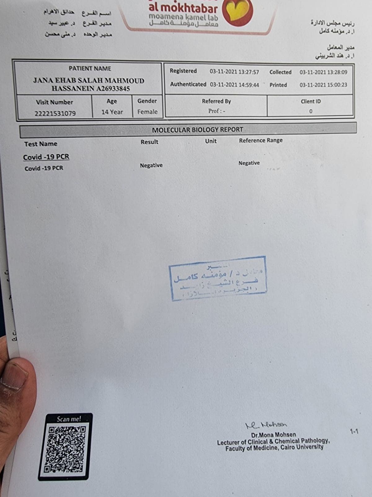 وتابع العجمي: ابنتي كانت في حالة رعب فور علمها بهذا الأمر وتساءلت عن إصابتها.. وفي المختبر أبلوغنا بشيء يحمل الشك والريبة عن إمكانية إجراء مسحة والحصول على نتيجتها بعد ساعة مقابل 2300 جنيه.. ولكن قمت بإجراء مسحة في مركز أخر ليتبين عدم إصابتها وهي طامة كبرى.