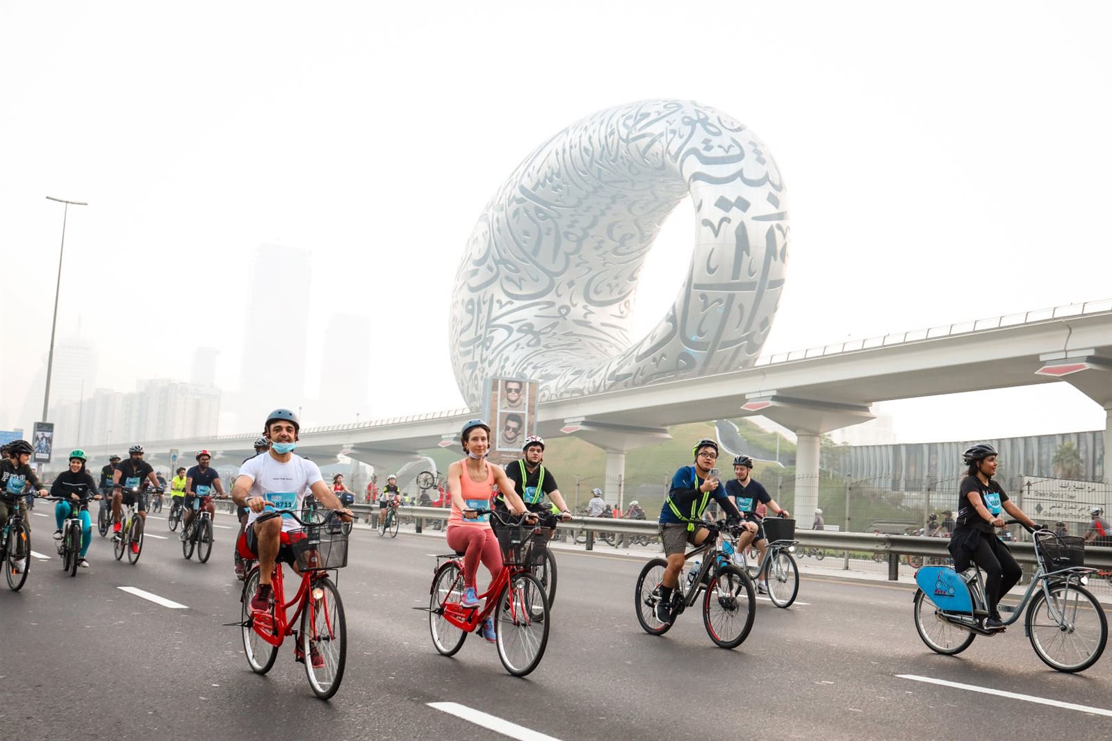 وانطلق راكبو الدراجات من المحترفين والهواة ممن يبلغون من العمر 10 سنوات فأكثر، على مسار 14 كيلومتر، من 5 نقاط بداية، على شارعي الشيخ زايد والمركز المالي مرورًا بأشهر المعالم المتميزة للمدينة بما فيها: متحف المستقبل، وسط مدينة دبي، أبراج الإمارات.