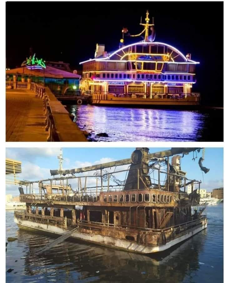 مركب خلود النيل قبل وبعد الحريق
