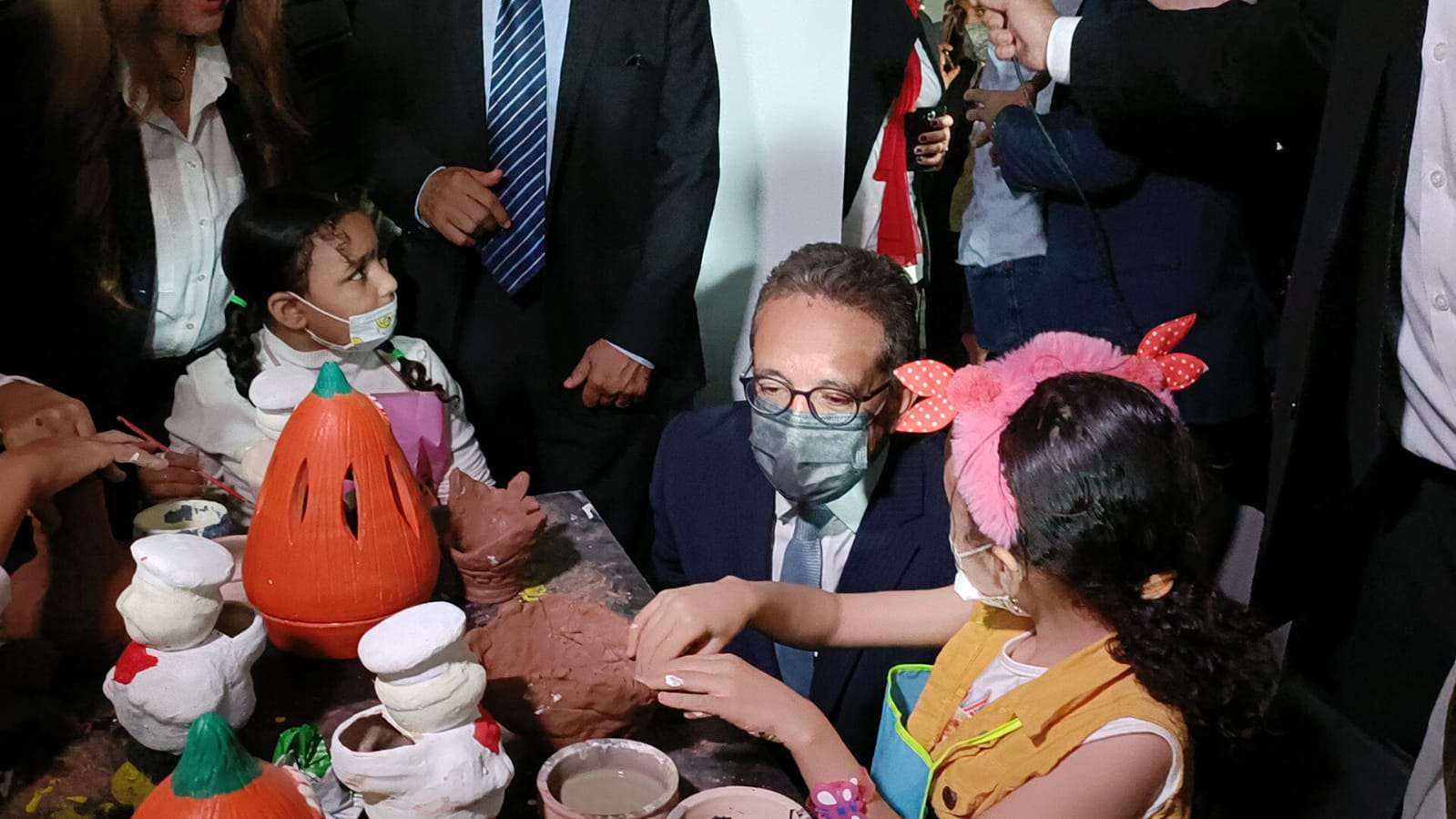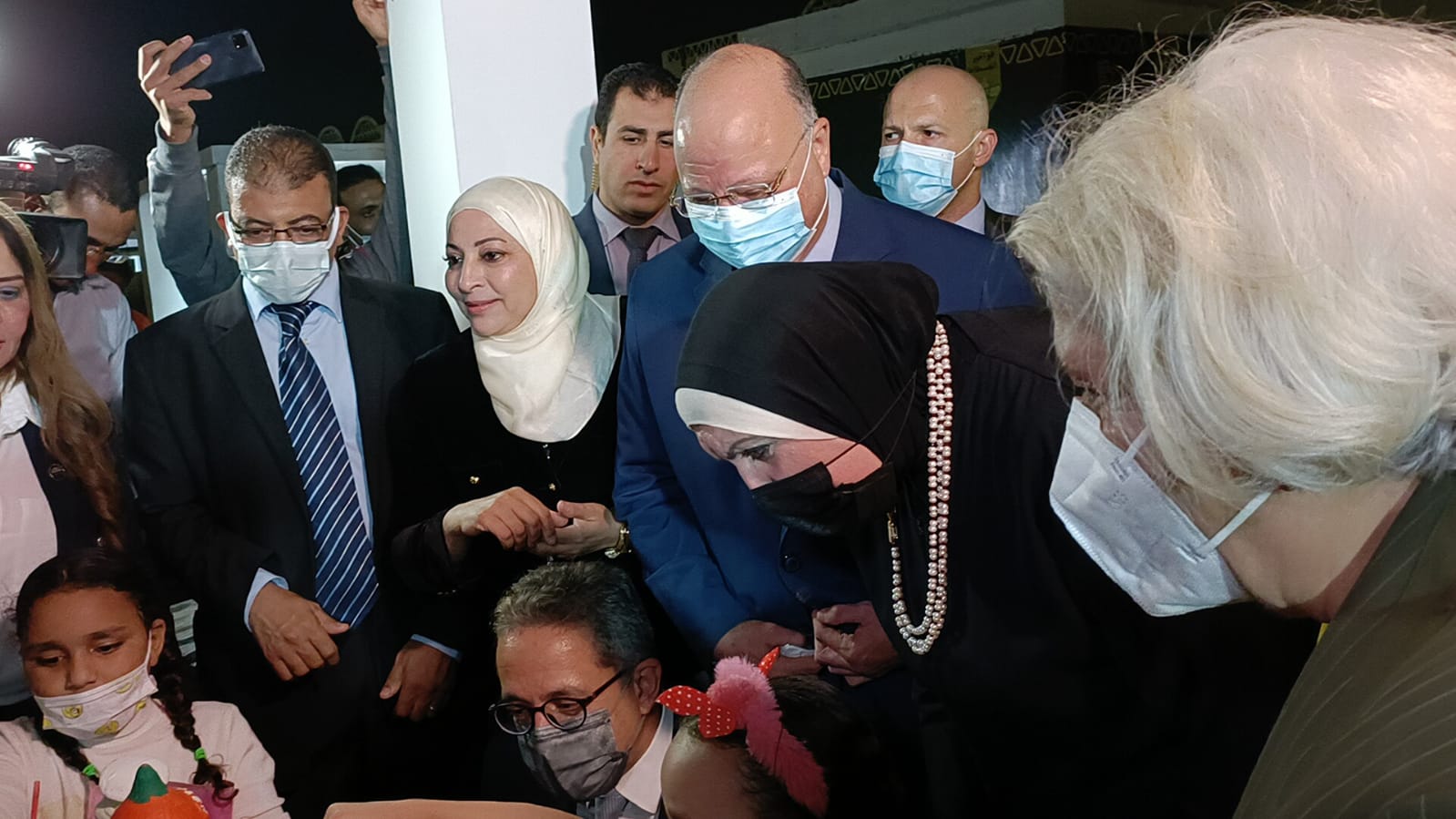 وشاهد الوزراء ومحافظ القاهرة عقب الافتتاح كيفية قيام الحرفيين بعمل المشغولات الخزفية من الفخار كما شاهدو معرضًا للمنتجات الخزفية الذى ضم جناحًا لأطفال مدينة الأسمرات الذين تم تعليمهم حرفة صناعة الفخار.