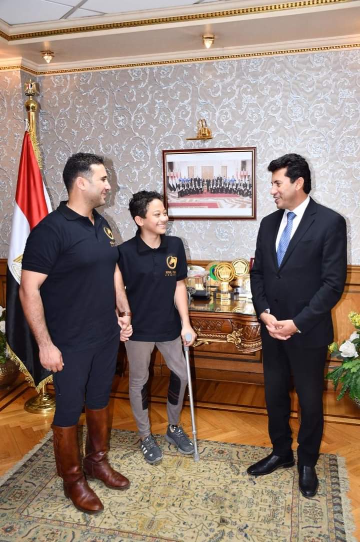 محمود سامح، 13 سنة، كرمه الدكتور أشرف صبحي، وزير الشباب والرياضة، لكونه أحد أبرز المتميزين في لعبة الفروسية على مستوى الجمهورية، وحصد جوائز عديدة رغم صغر سنه، إضافة إلى انتصاره على ظروفه المرضية.