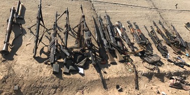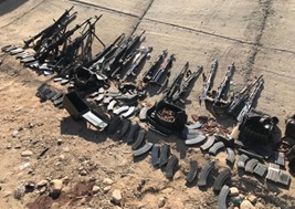 وضبطت بحوزتهم مدفع أر بى جي- 2 رشاش متعدد بشرائط الذخيرة - عدد 12 سلاح آلى - عدد أربعة بنادق مختلفة الأنواع - عدد ٢ طبنجة وفرد خرطوش-كميات من الذخيرة المختلفة لكل الأسلحة.