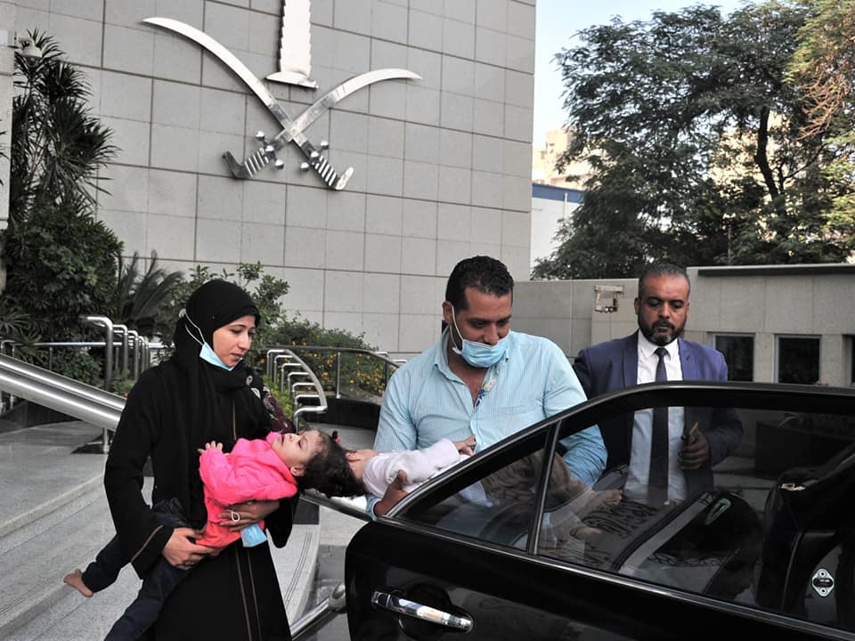 وسلّم السفير السعودي أسامة نقلي، جوازات السفر والتأشيرات للطفلتين ووالديهما، سائلًا المولى- عز وجل- أن تُكلل العملية بالنجاح والعودة السالمة إلى أرض مصر.