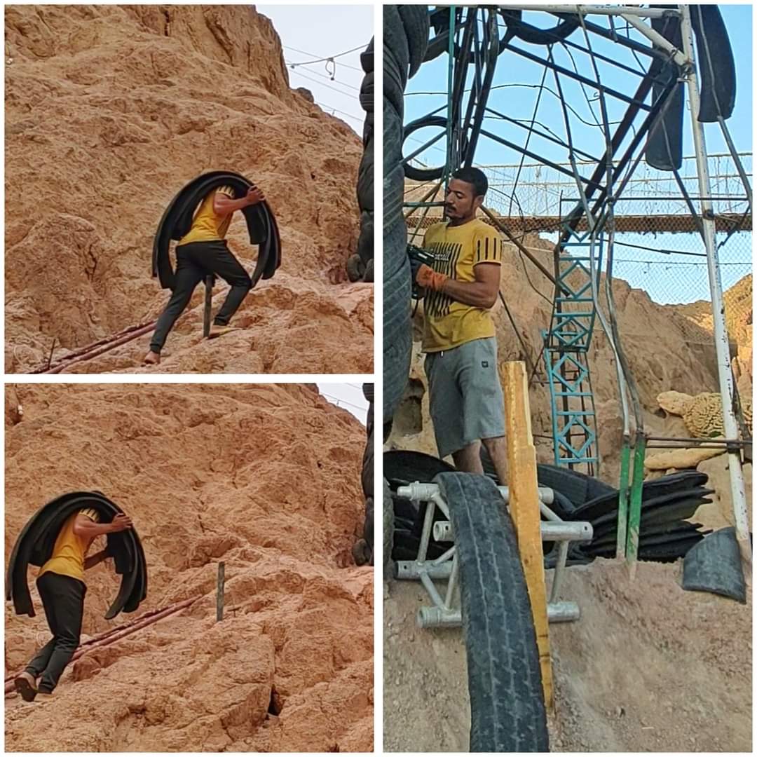 وأردف صلاح، أن العمل يعتبر هو الأول من نوعه، الذي يتم تصنيعه من اطارات السيارات في الوطن العربي بارتفاع 7 متر في وادي الطويلات مدينة دهب، مشيرا إلى أن العمل اخذ مجهود كبير وأتمنى من الله أن ينال إعجاب المواطنين وشعب مصر.
