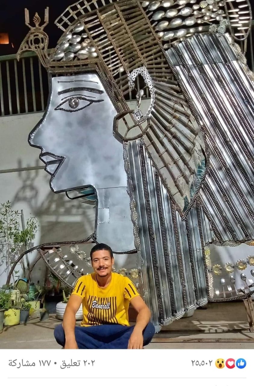 ابراهيم صلاح صاحب الـ 28 عام صاحب مجسم الغوريلا "كينج كونج"، قال للقاهرة 24، إنه أسس ورشته الخاصة فى فن الخردة المعدنية عام 2018 حيث اقوم بإنشاء ابجورات ونحت تماثيل بالحجم المعدني المخصص ونماذج مجسمات للأماكن الترفيهية والافتتاحات واستنساخ من الحضارة المصرية من المعدن.