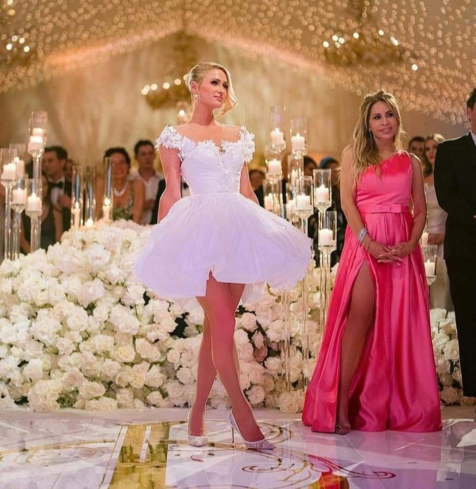 وكان بين المدعوين الذين حضروا الحفل في ضيعة عائلتها الفخمة كيم كارداشيان ونيكول ريتشي وبولا عبدول. وأفاد موقع المشاهير تي.إم. زد، أن المغنية ديمي لوفاتو قدمت عرضا في الحفل الذي غيرت فيه هيلتون أزياءها 4 مرات.