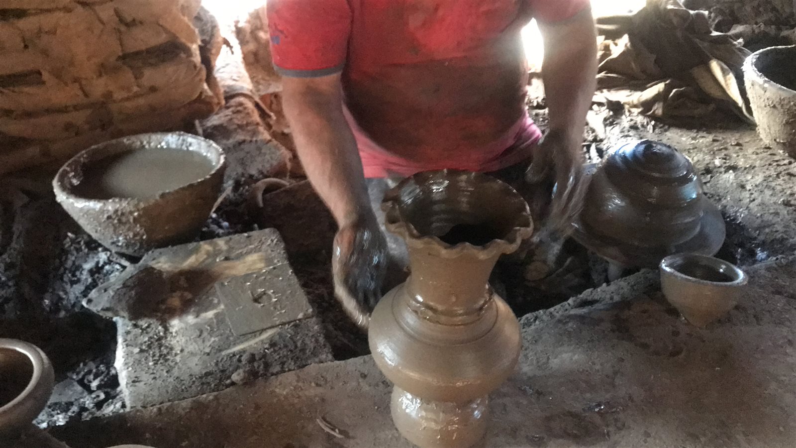 وأضاف: أنا بصنع كل شئ بإيدي بنشتري الطين كل شهرين أو ثلاثة ونسيبه في الشمس يجف ثم نضعه لنصفيه ولما يجهز بندخله مكنة للعجين ويخرج الطين جاهز للتشكيل وبنشكل أي قطعة عايزينها وبنسيبها تجف ثم بندخلها الفرن وكده بتكون جاهزة للاستخدام وفي أشكال كتير بنصنعها يوميًا.