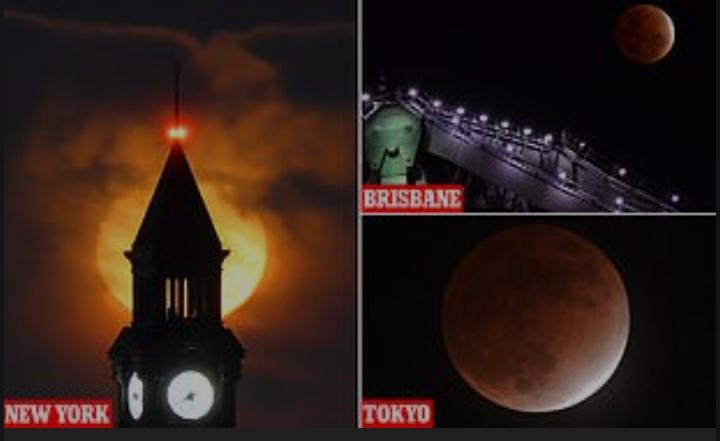 نشرت صحيفة الديلي ميل مجموعة من الصور لأطول خسوف جزئي للقمر في القرن الجاري، والذي ظهر فوق بريسبان وطوكيو ونيويورك.