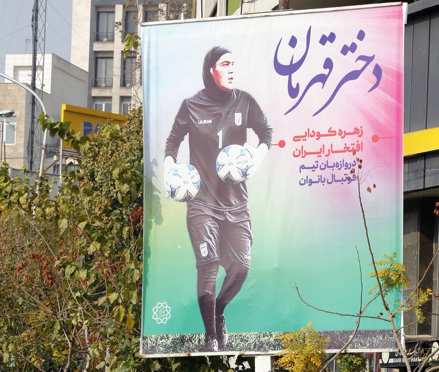 قدمت الجماهير الإيرانية لافتات تدعم حارسة المنتخب الإيراني للسيدات، زهرة کودایی، صاحبة الـ 32 سنة بعد الاتهامات التي طالتها من قبل الاتحاد الأردني، بأنها رجل إثر خروج منتخب الأردن من كأس آسيا للسيدات بركلات الترجيح، حيث تصدت زهرة لضربتين جزاء.