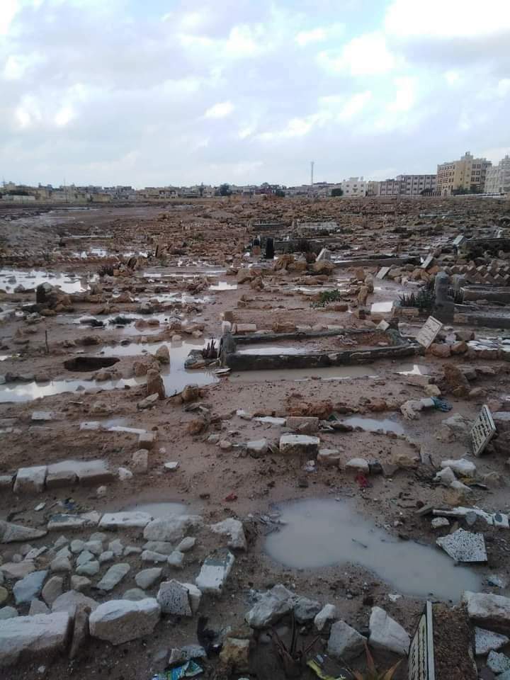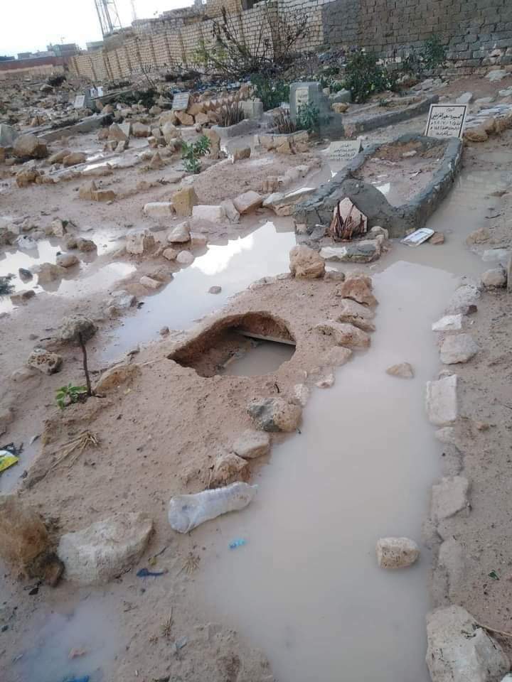 وظهرت دعوات على مواقع التواصل الاجتماعي تطالب المسؤولين والمتطوعين بسرعة التدخل حفاظا على حرمة، وعدم خروج الجثث بعد غمرها بالأمطار.