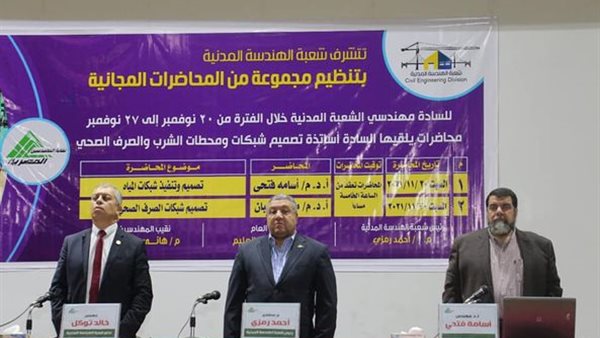 جاء ذلك خلال محاضرات هذا الأسبوع ضمن سلسلة المحاضرات المجانية التي تنظمها شعبة الهندسة المدنية، برئاسة المهندس الاستشاري أحمد رمزي، للأسبوع الثالث عشر على التوالي.
