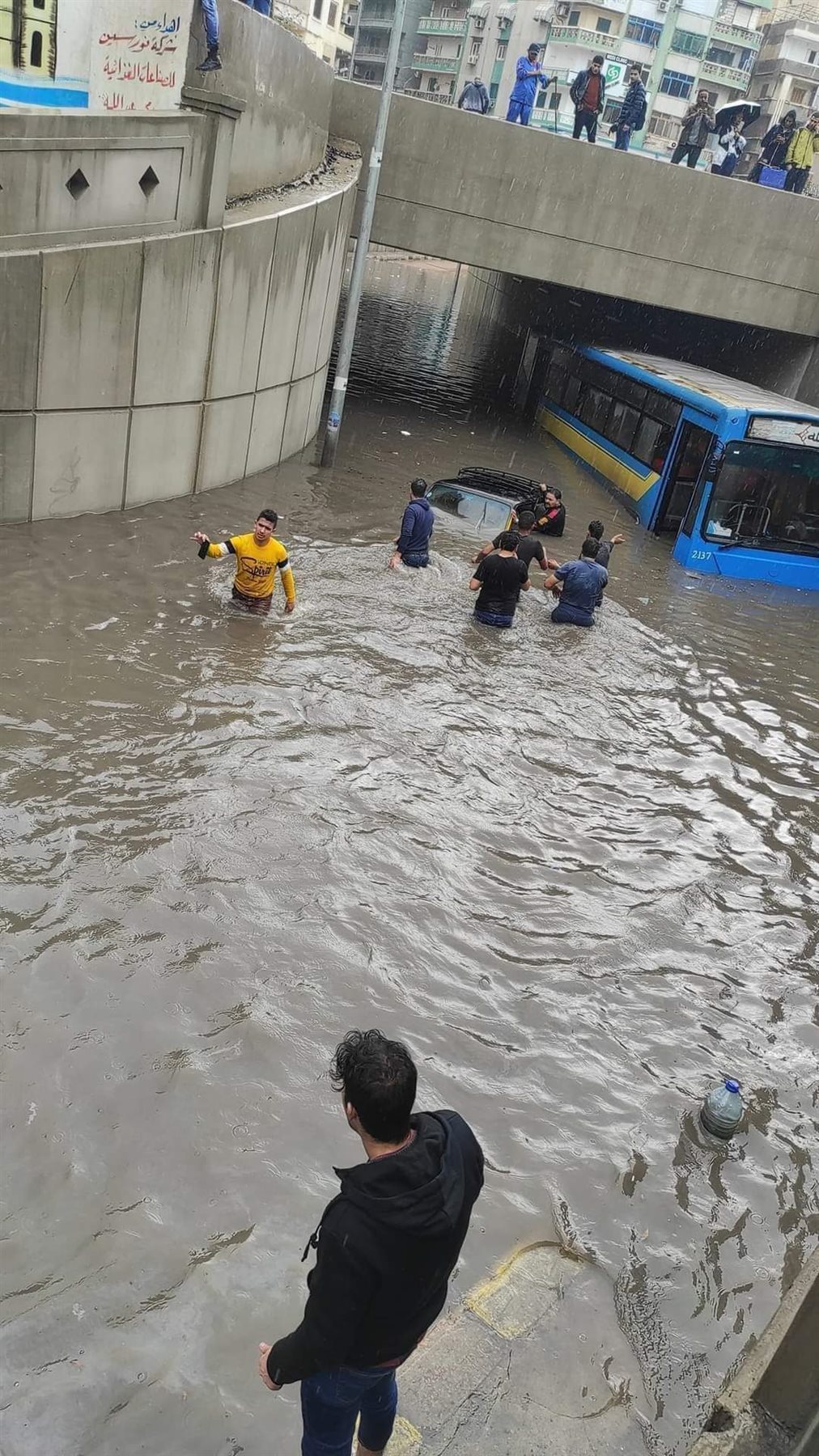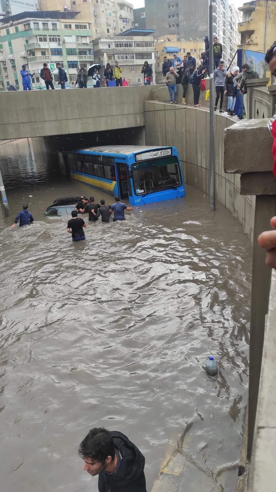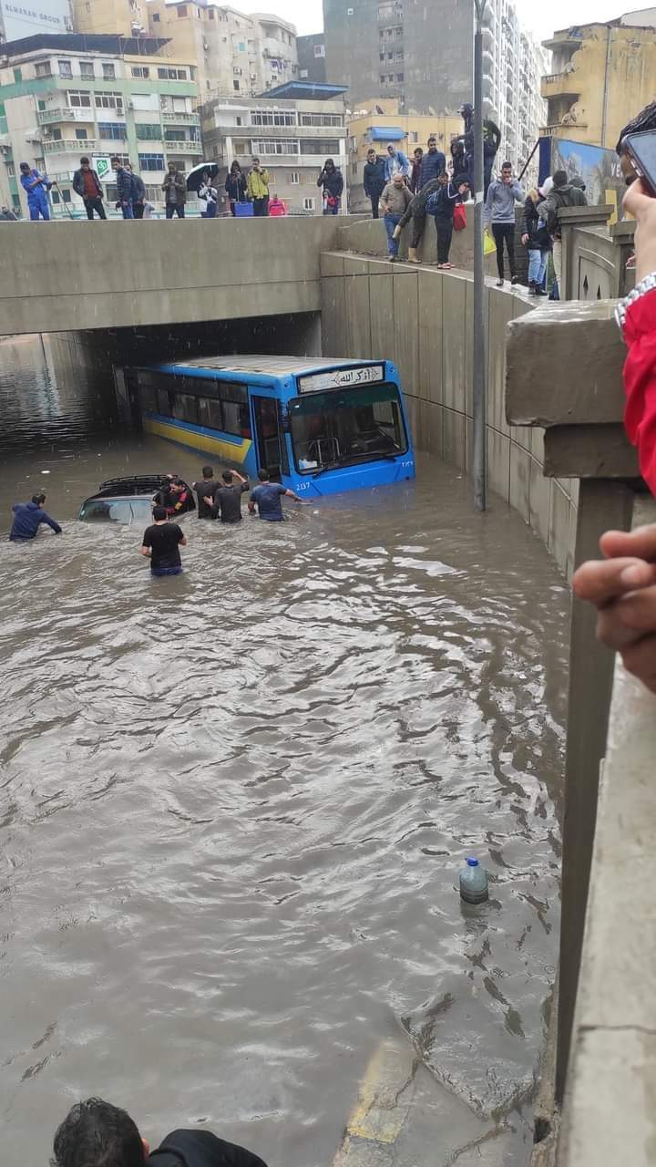 تسببت موجة الطقس السيئ التي تعرضت لها الإسكندرية صباح اليوم، في غرق أتوبيس تابع لهيئة النقل العام أسفل كوبري كليوباترا المؤدي لمنطقة سموحة، وذلك بعد أن غمرته مياه الأمطار بالكامل.