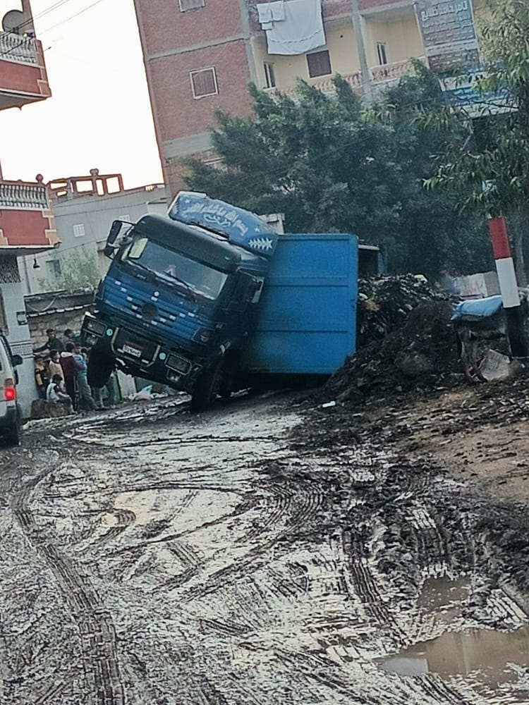 بسبب الطقس السيئ.. انقلاب سيارة نقل وإصابة قائدها بطريق طنطا - بسيون