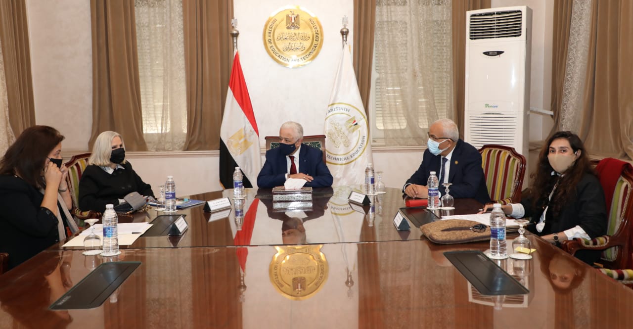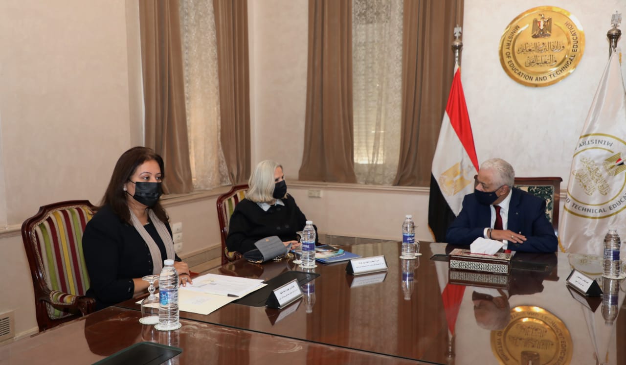 واستعرض وزير التربية والتعليم والتعليم الفني، خلال اللقاء، جوانب المشروع القومي للدولة المصرية لتطوير التعليم، الذي يستهدف إعداد تصور جديد للمجتمع التعليمي ككل، ليصبح الطالب أكثر إقبالًا على التعلم والابتكار، لافتًا إلى أن الوزارة تعمل جاهدة لتطوير مناهج التعليم لتوائم متطلبات سوق العمل المتزايدة سواء على المستوى المحلي أو الدولي، وكذا تعزيز وتنمية المهارات لدى النشء والشباب.