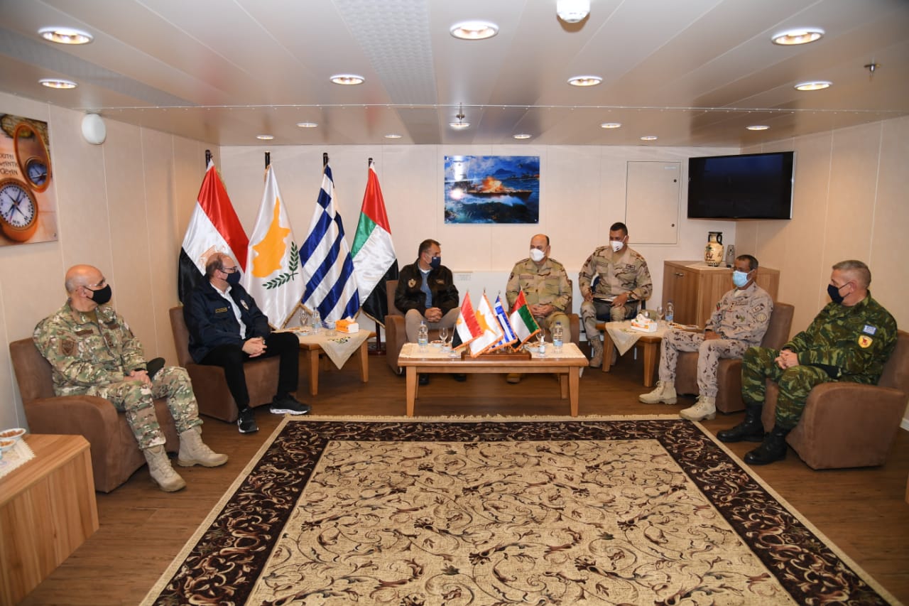وذلك بحضور عدد من كبار قادة القوات المسلحة المصرية واليونانية والقبرصية والإماراتية، في إطار خطة التدريبات المشتركة التي تنفذ مع الدول الصديقة والشقيقة بما يسهم في تنامى الخبرات المكتسبة وعلاقات الشراكة وتعزيز أوجه التعاون العسكري المثمر بين الدول المشاركة في التدريب.