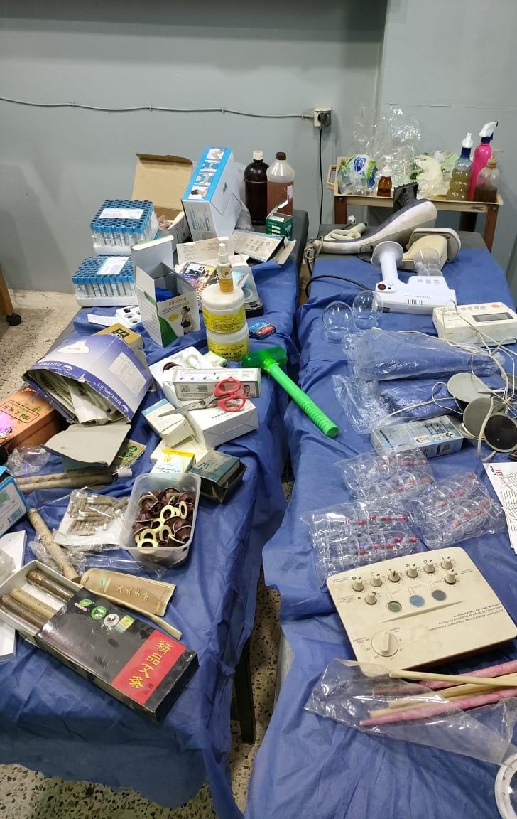 وتبين من خلال الفحص ضبط خريج كلية زراعة ينتحل صفة طبيب أخصائي طب أسرة ويدعي أنه حاصل علي دكتوراه في التغذية العلاجية والمناعة وأخصائي إصابات وتأهيل ومدرب لياقة بدنية ويقوم بإيهام مرضاه من السيدات وكبار السن بالعلاج بالإبر الصينية ودودة العلق، وكذلك تقويم العمود الفقري باستخدام تقنيات العلاج اليدوي "الكايرو براكتك" والعلاج بالحجامة والتدليك وتم مداهمة المركز الوهمي.