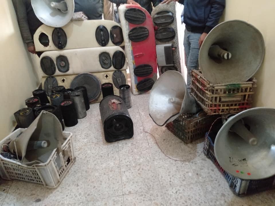 وقد أسفرت الحملة عن ضبط والتحفظ على عدد 5 فقط مكبرات كبير صوت بمشتملات، عدد 6 برميل صوت وسط، عدد 2 فقط برميل صوت صغير، عدد 8 سماعات، عدد 7 ميكروفون كامل بمشتملاته، عدد 5 ميكروفون فقط عدد 14 لافتة إعلانية.