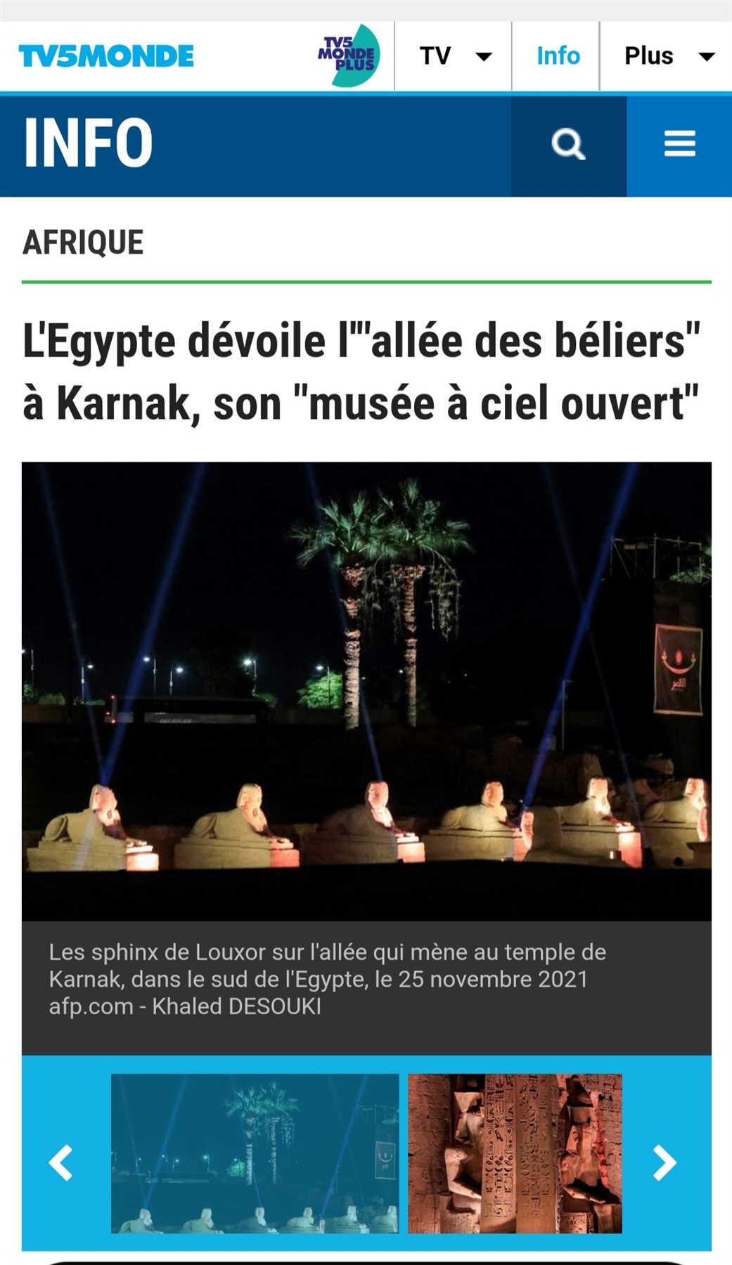 فيما وصفت شبكة TV5 monde الفرنسية الحدث بأن: مصر تكشف النقاب عن طريق الكباش في متحفها المفتوح للسماء بمدينة الأقصر.